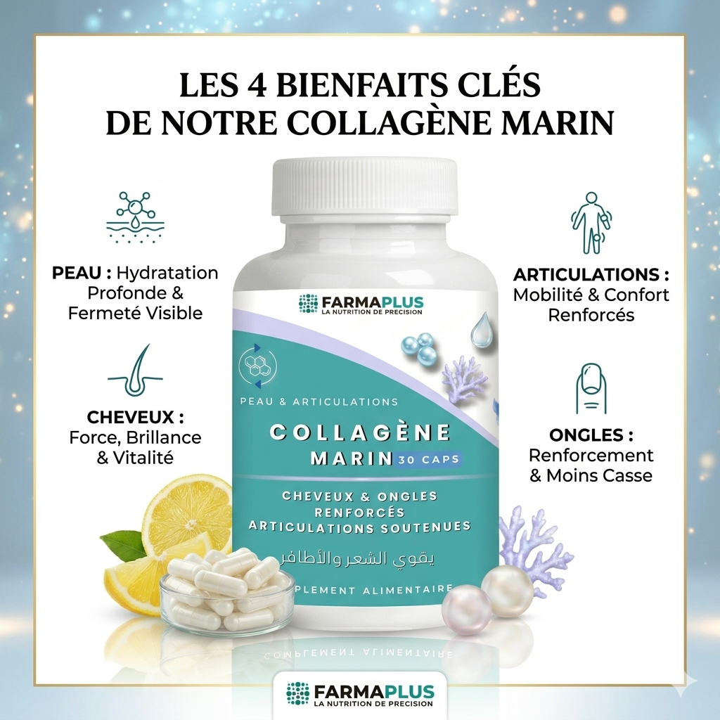 FARMAPLUS Collagène Marin 30 caps est un produit de la catégorie immunité & énergie conçu pour une routine simple et ciblée. Il contribue à soutenir l’énergie, renforcer la routine santé et accompagner le bien-être quotidien. Idéal pour les clients qui recherchent une solution claire, pratique et cohérente avec leurs objectifs.